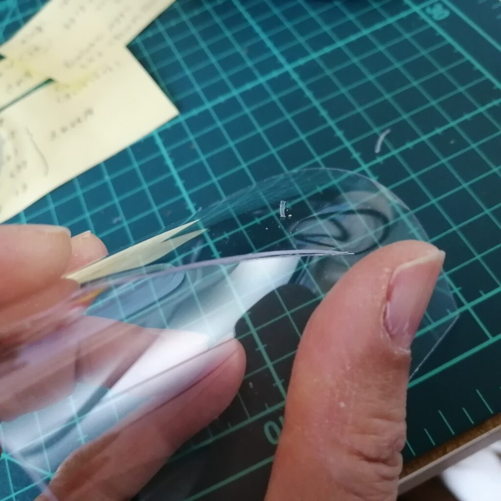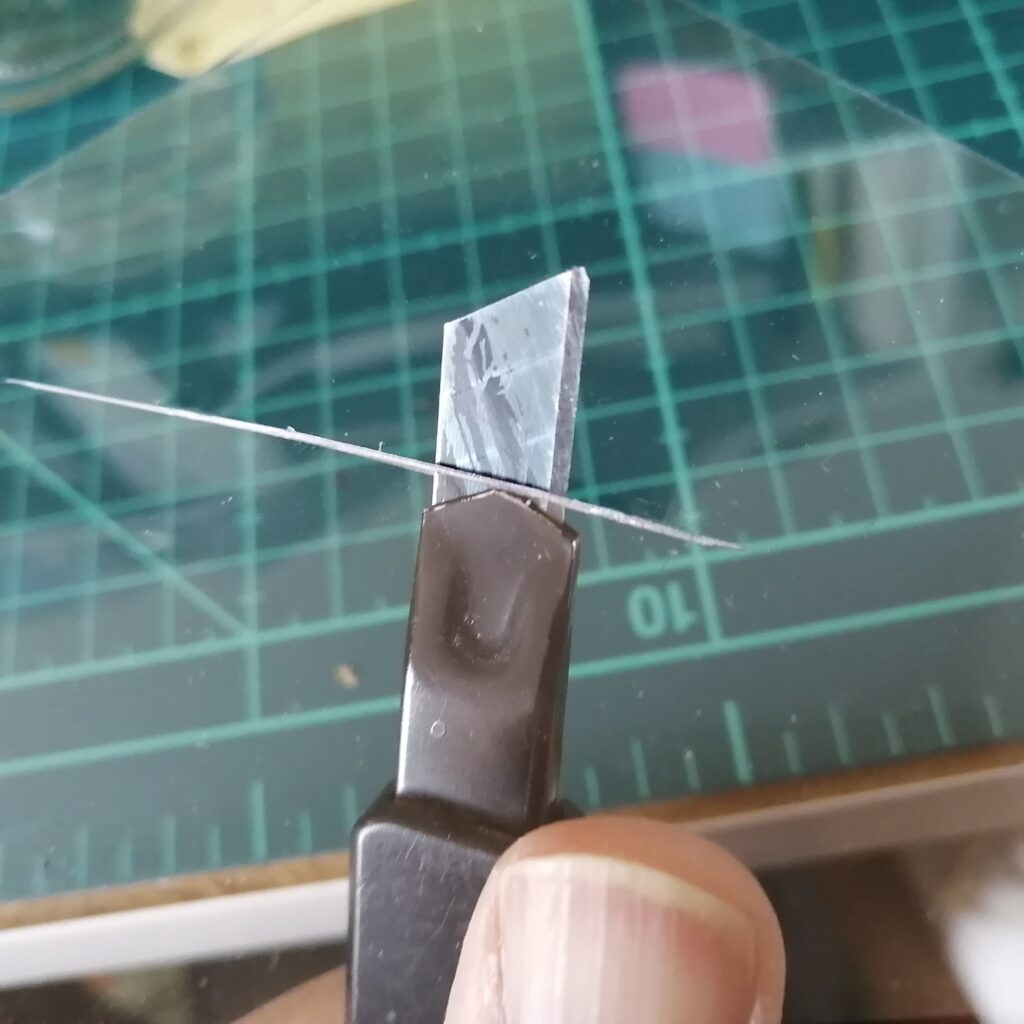 購入したポリカーボネート板をカッターで傷つけます。