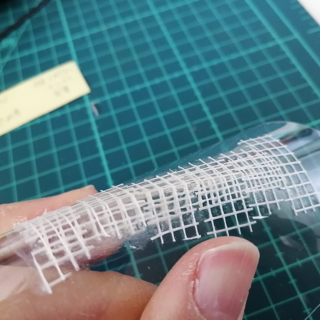 最初のメッシュテープの上に作った接着剤を塗り、乾燥後、メッシュテープを重ねました。