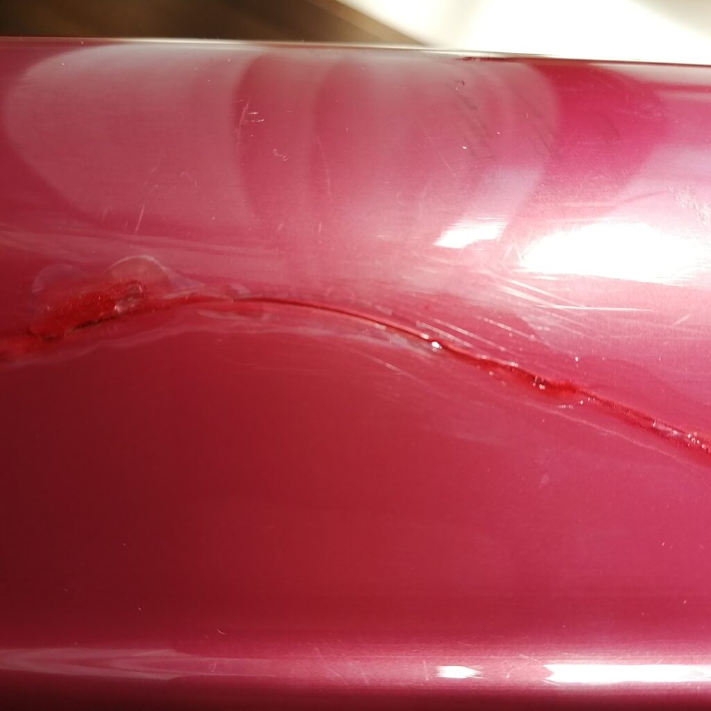 私のスーツケースの場合ですが、試しに、割れた傷口にこの液体を塗ってみました。