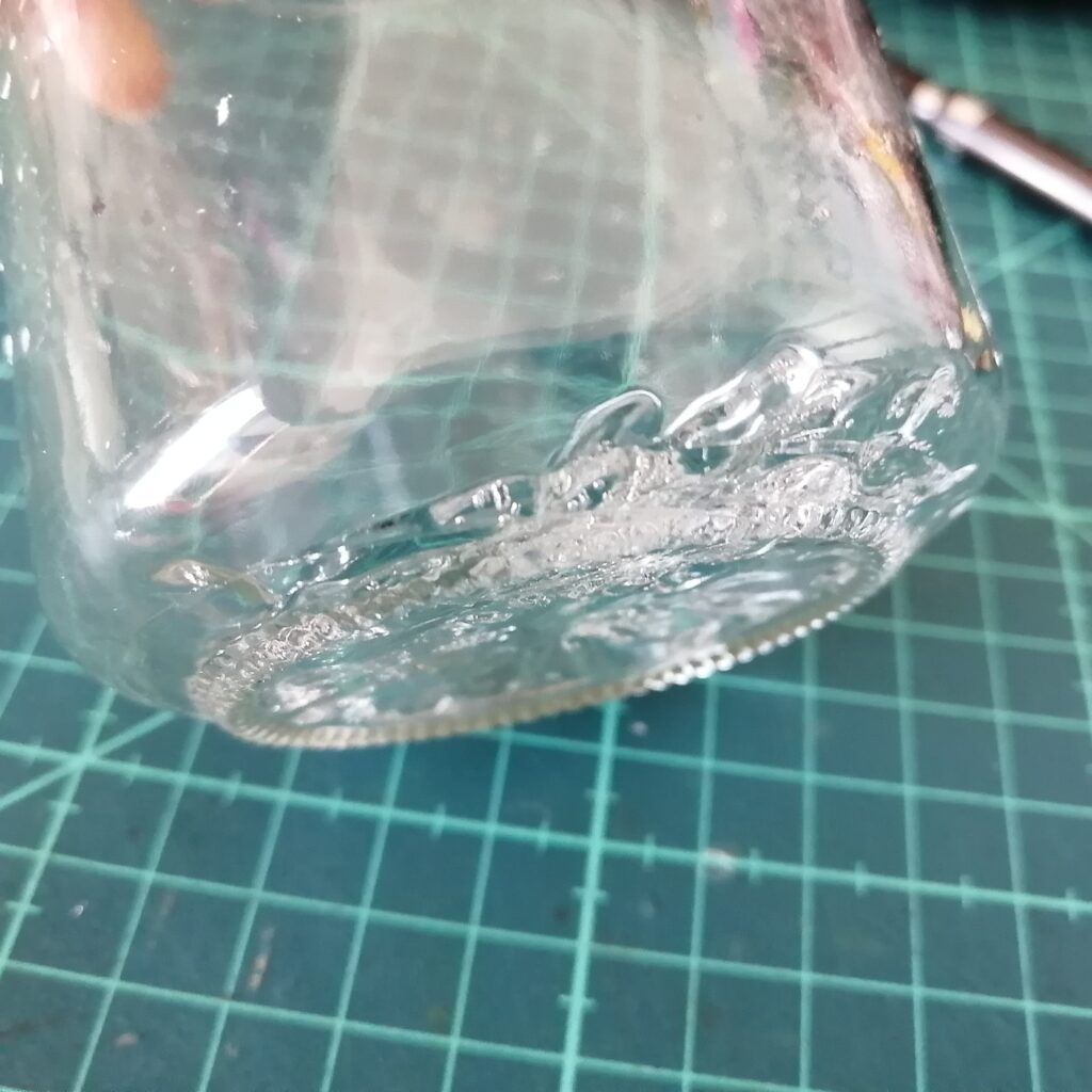 細かく切ったポリカーボネート板を入れた空き瓶にアクリサンデーをドボドボと注ぎました。