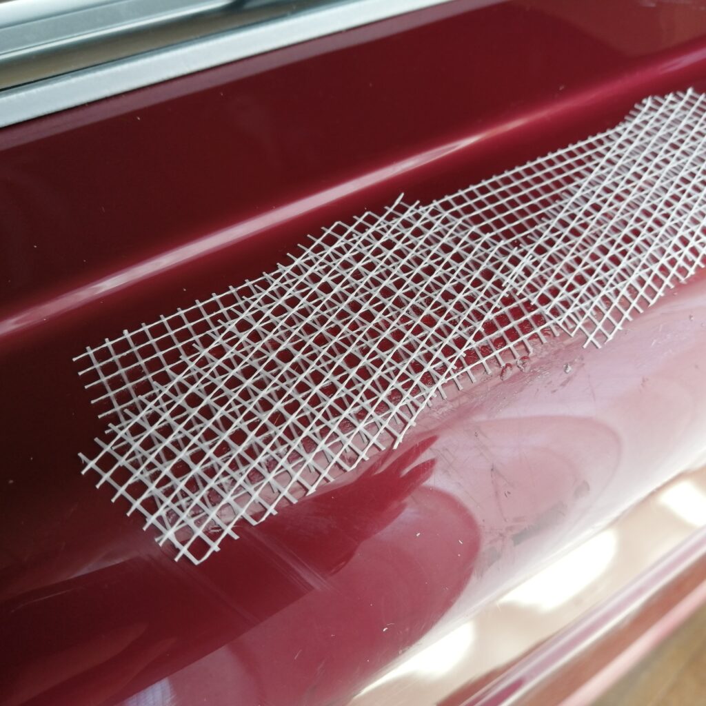 接着剤を塗る1回目&メッシュテープの重ね貼り